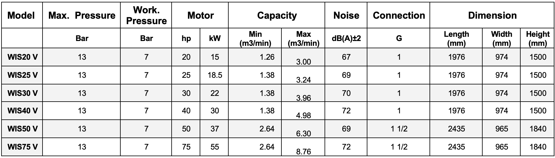Máy nén khí WisAir_ model:WIS20 V – WIS75 V: MÁY NÉN KHÍ KHÔNG DẦU, TRỤC NGÂM NƯỚC – BIẾN TẦN TRUYỀN ĐỘNG TRỰC TIẾP