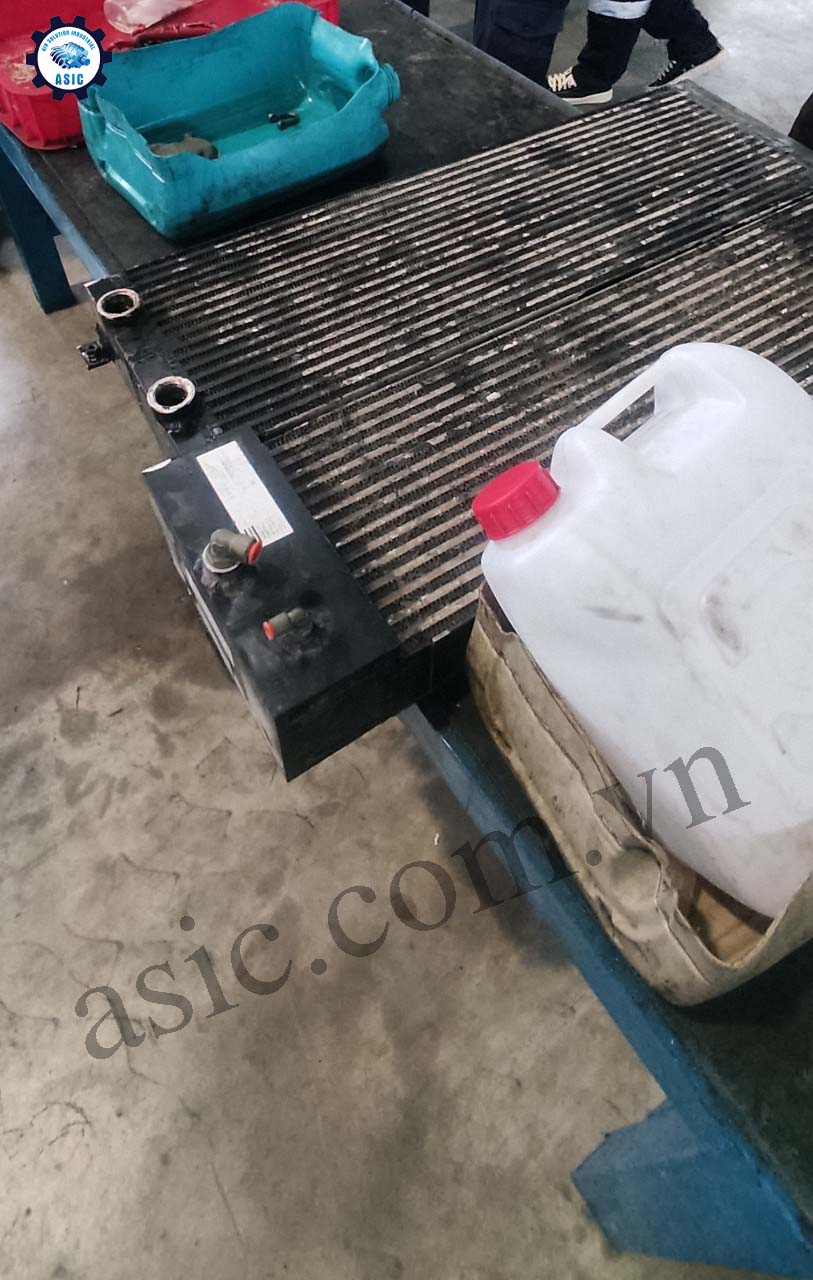 Thực hiện làm sạch két giải nhiệt để loại bỏ các cặn và bụi tích tụ bên trong. Điều này có thể thực hiện bằng cách sử dụng dung dịch làm sạch hoặc tháo rời các bộ phận để làm sạch.